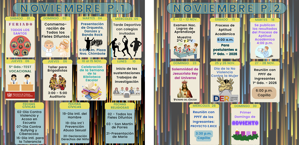 Muestra las fechas de las actividades más importantes en el colegio.